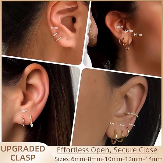 Master the art of the curated ear with our Divine Everyday Essential Huggie Set. This meticulously crafted 5-pair collection features five graduated sizes, designed to fit seamlessly from your main lobe to your highest cartilage piercing. Whether worn as a full stack for a bold, golden look or individually for a minimalist "clean girl" aesthetic, these hoops are the ultimate jewelry box staple.