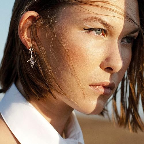 Guide your style with these celestial-inspired North Star drop earrings. Crafted with a radiant gold finish, each earring features a uniquely sculpted starburst silhouette anchored by a precision-cut baguette crystal focal point.